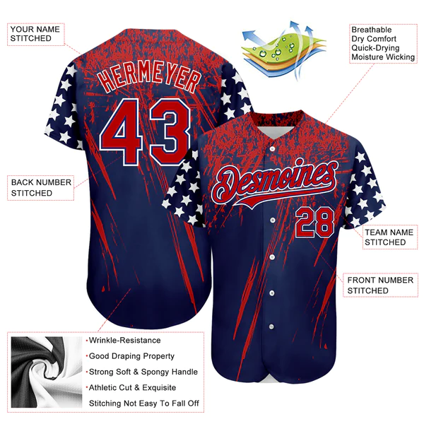 Custom Navy Red-Royal 3D American Flag Authentic Baseball Jersey
