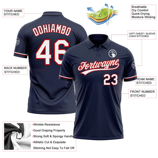 Be the first to review “Custom Navy White-Red Performance Vapor Golf Polo Shirt”